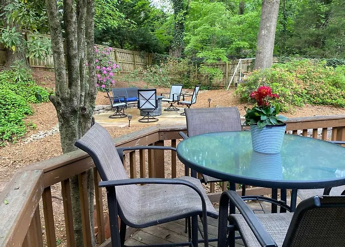 Picture this: a charming cabin nestled in the lush forests of Clemson, inviting you and your friends to escape the hustle and bustle of city life and indulge in tranquility. The cozy interiors and rustic décor create the perfect ambiance for late-night chats by the crackling fireplace or enjoying a glass of wine on the private porch overlooking the serene surroundings. As the sun sets behind the trees, laughter fills the air as your friends gather around for a BBQ feast under the starlit sky, creating unforgettable memories in this idyllic retreat.